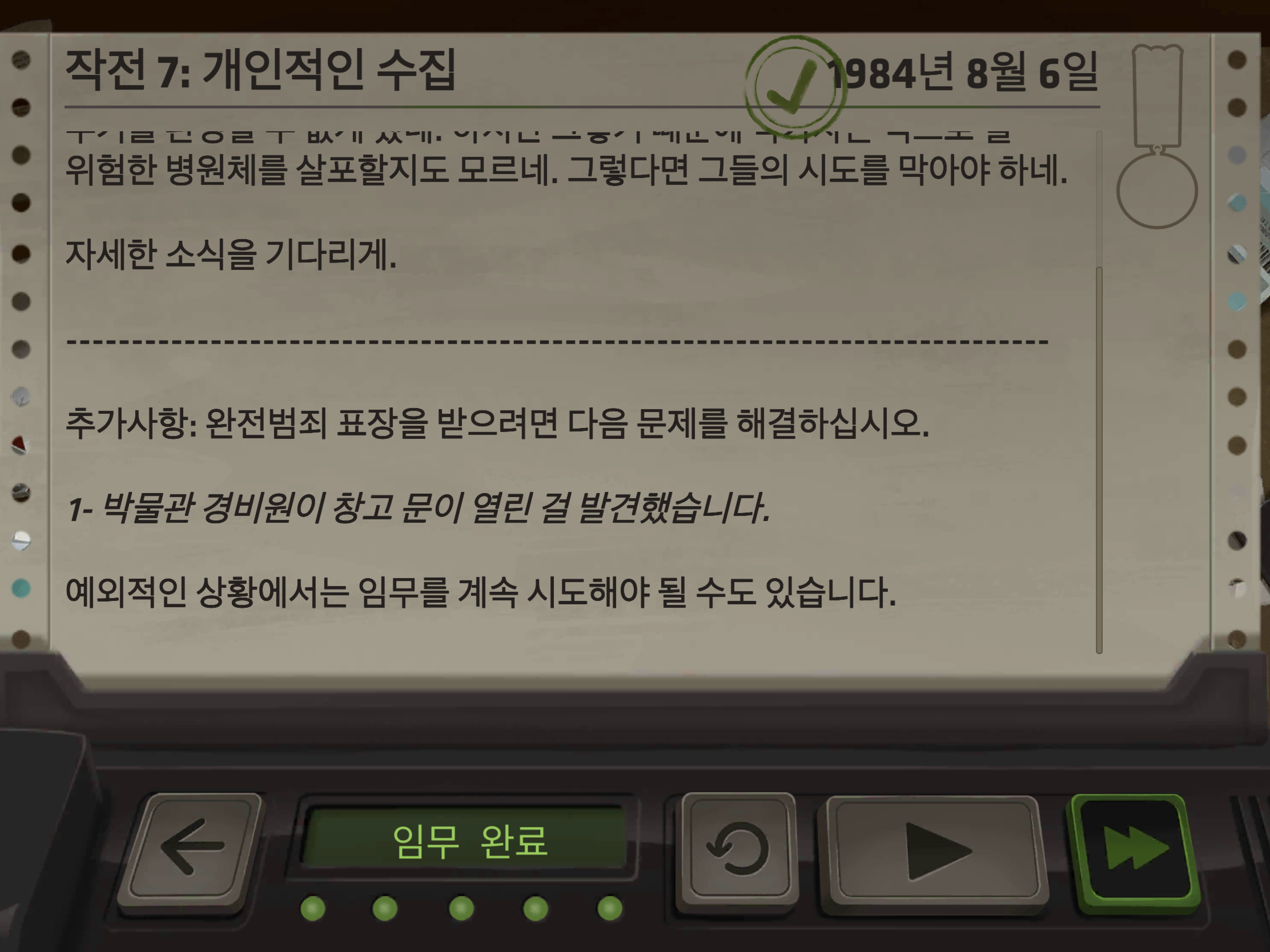 다른 방을 못 잠가서 완전범죄 표장을 받을 수가 없었다...